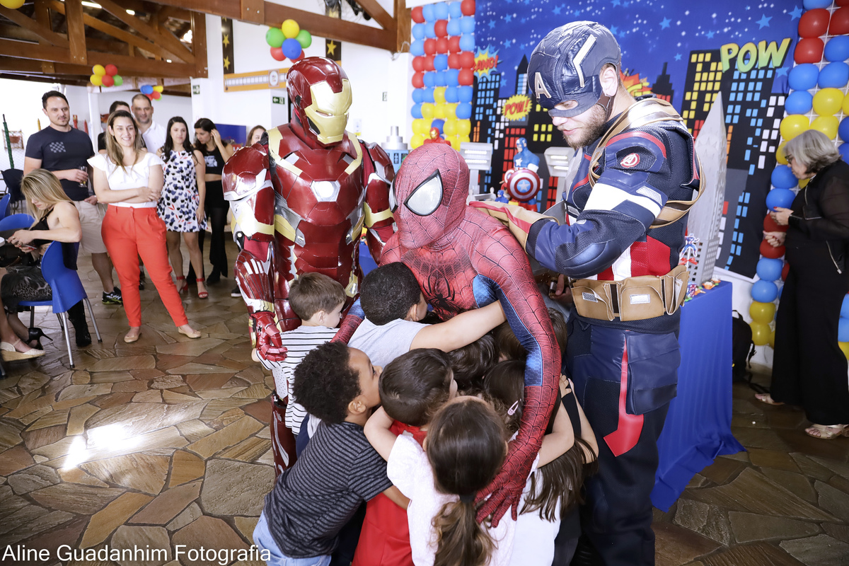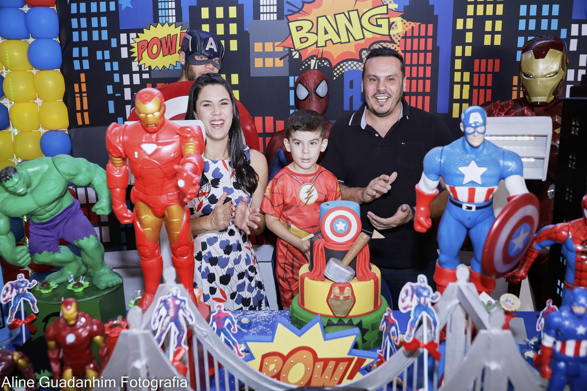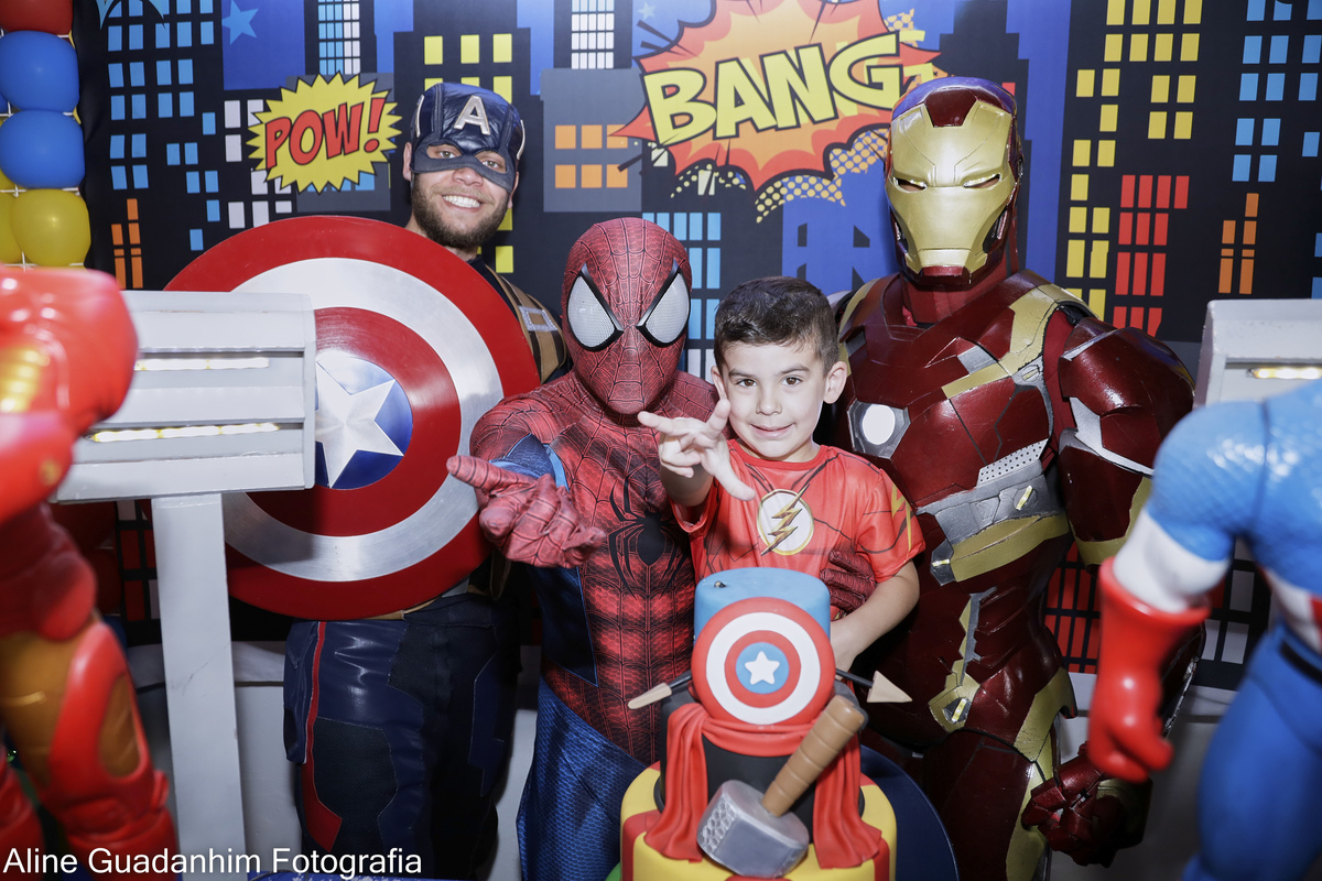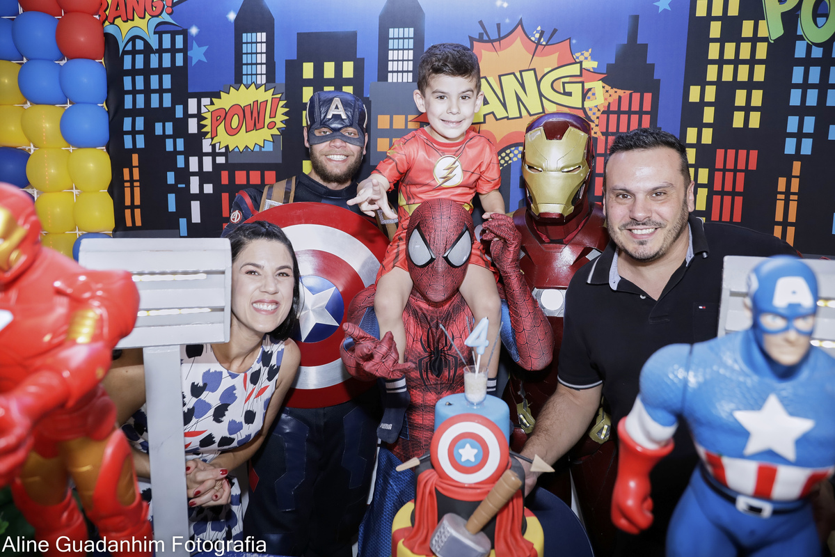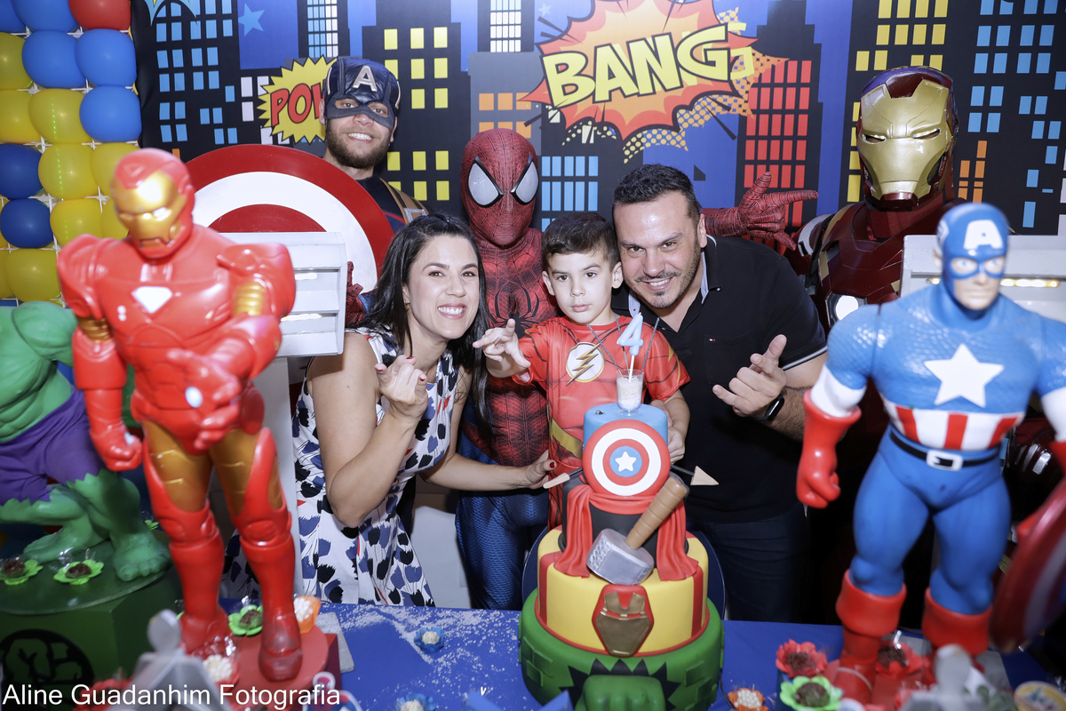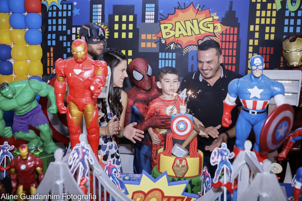 Theo se divertiu na sua festa de aniverário de 4 anos, com a presença dos super heróis Homem Aranha, Homem de Ferro e Capitão América!!