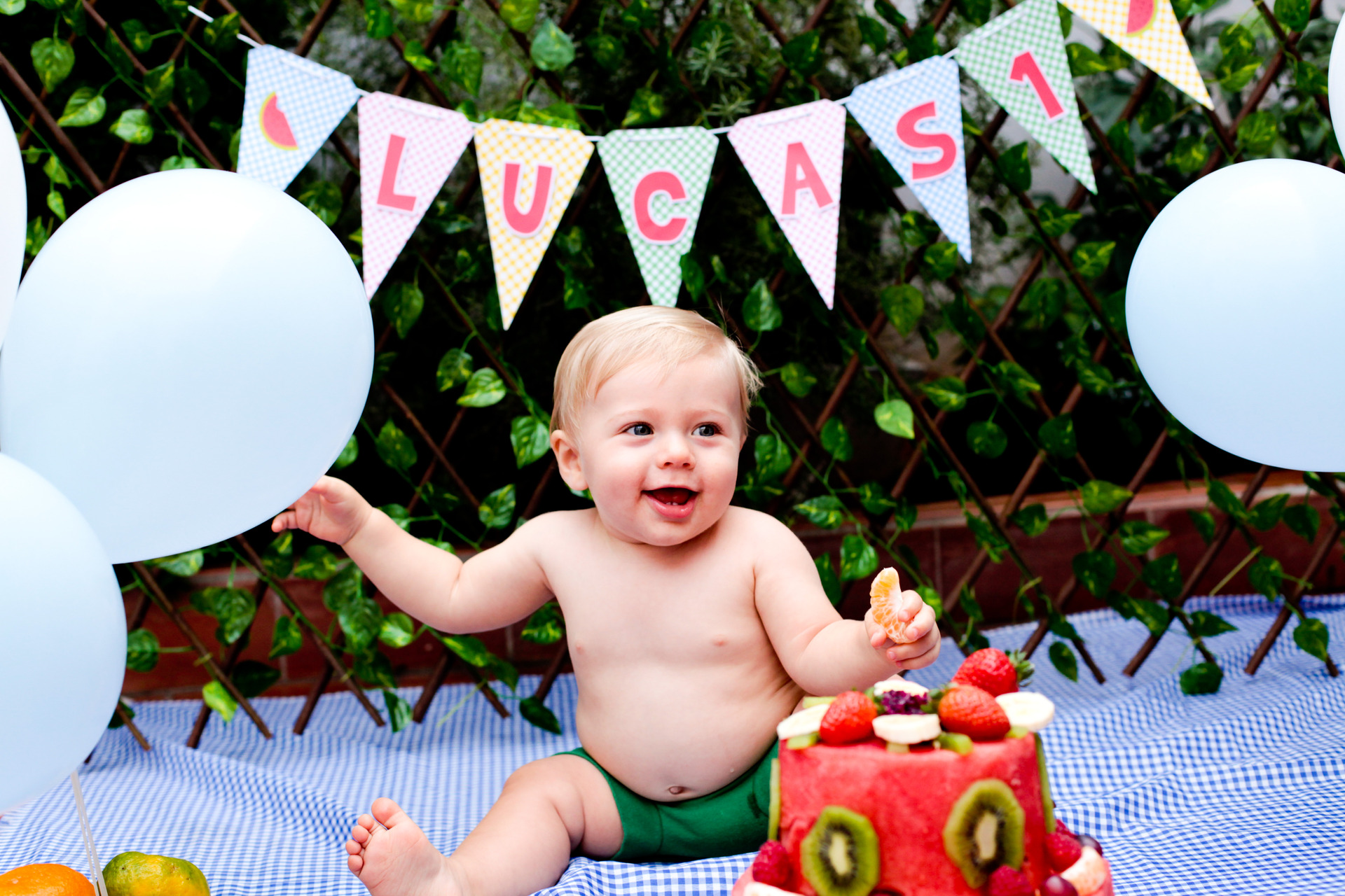 Algumas mamãe e papais também utilizam bolo de frutas ao invés do bolo tradicional por conter açucar, que chamamos de "Smash the Fruit".
